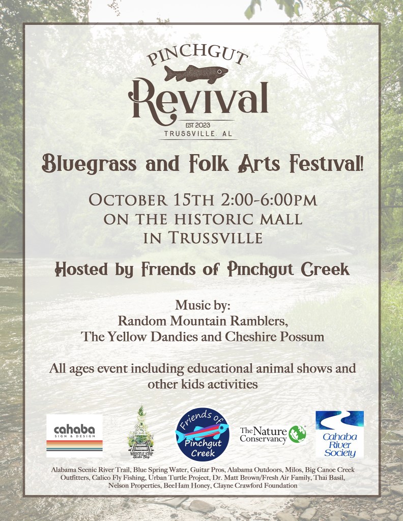 Special thanks to our Sturgeon sponsors: The Nature Conservancy , Cahaba River Society, Whistlestop Garden Shop, Alabama Scenic River Trail, Sanitary Rug Cleaners, Cahaba Design, and Icon Trussville.